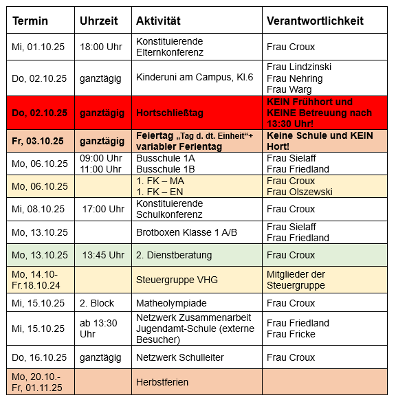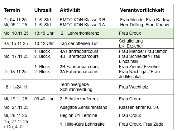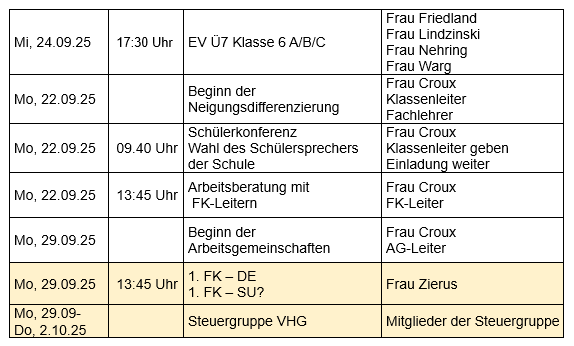 Bitte beachten Sie auch die Termine im Hausaufgabenheft.